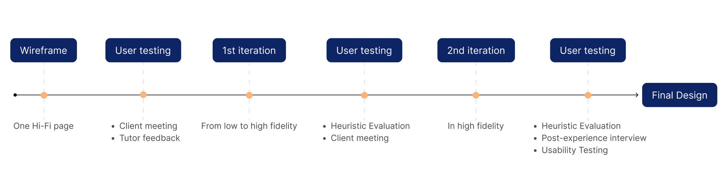 Two rounds of user testing were conducted, including obtaining feedback from clients to determine where improvements could be made to meet users' expectations, needs and desires.